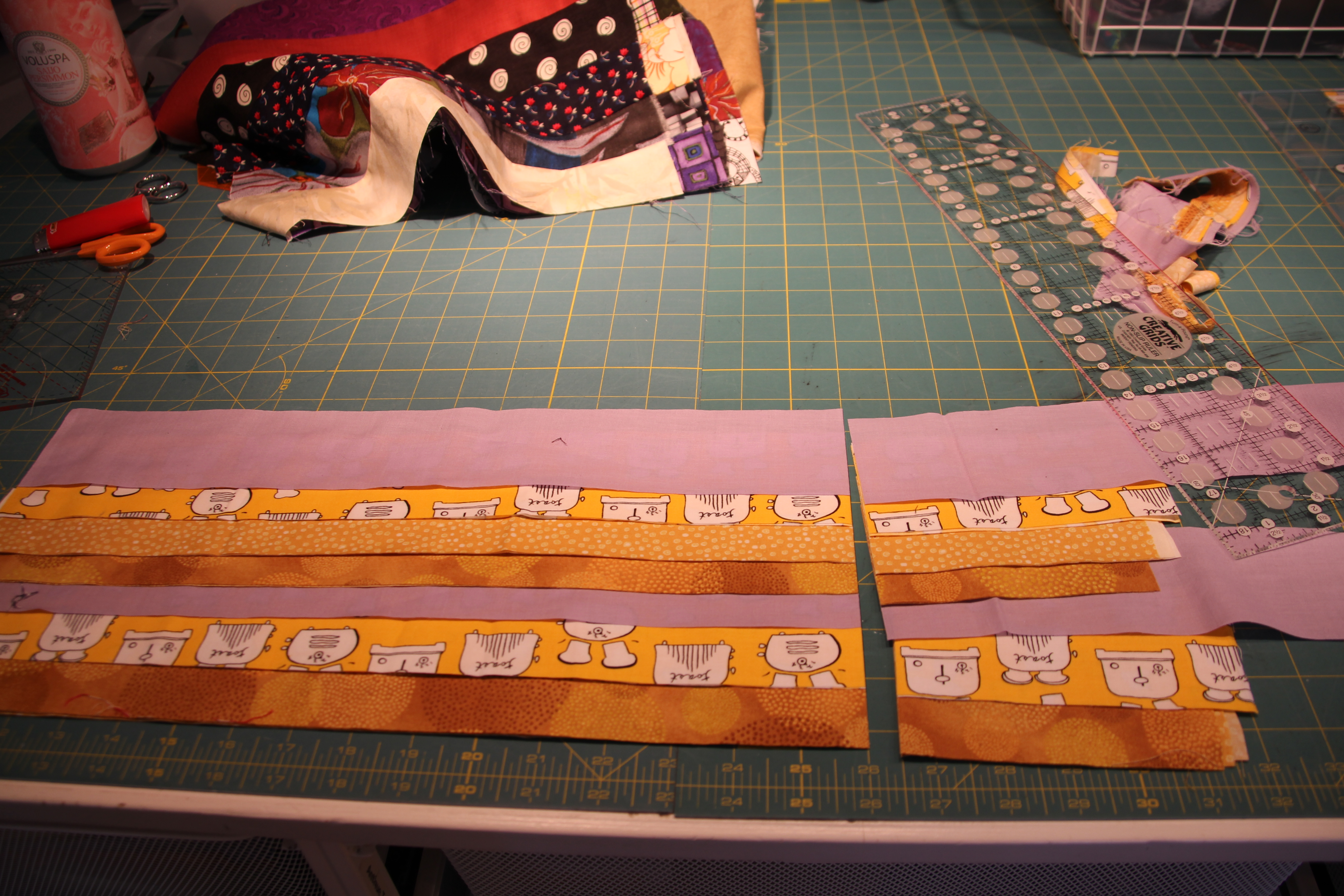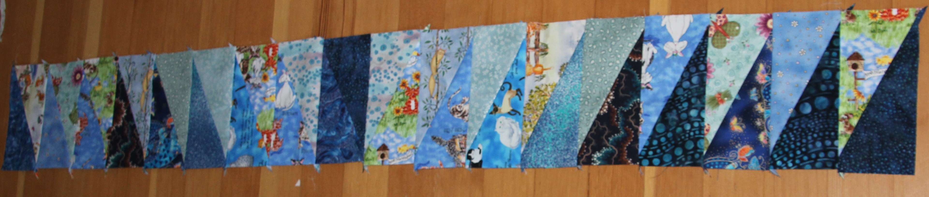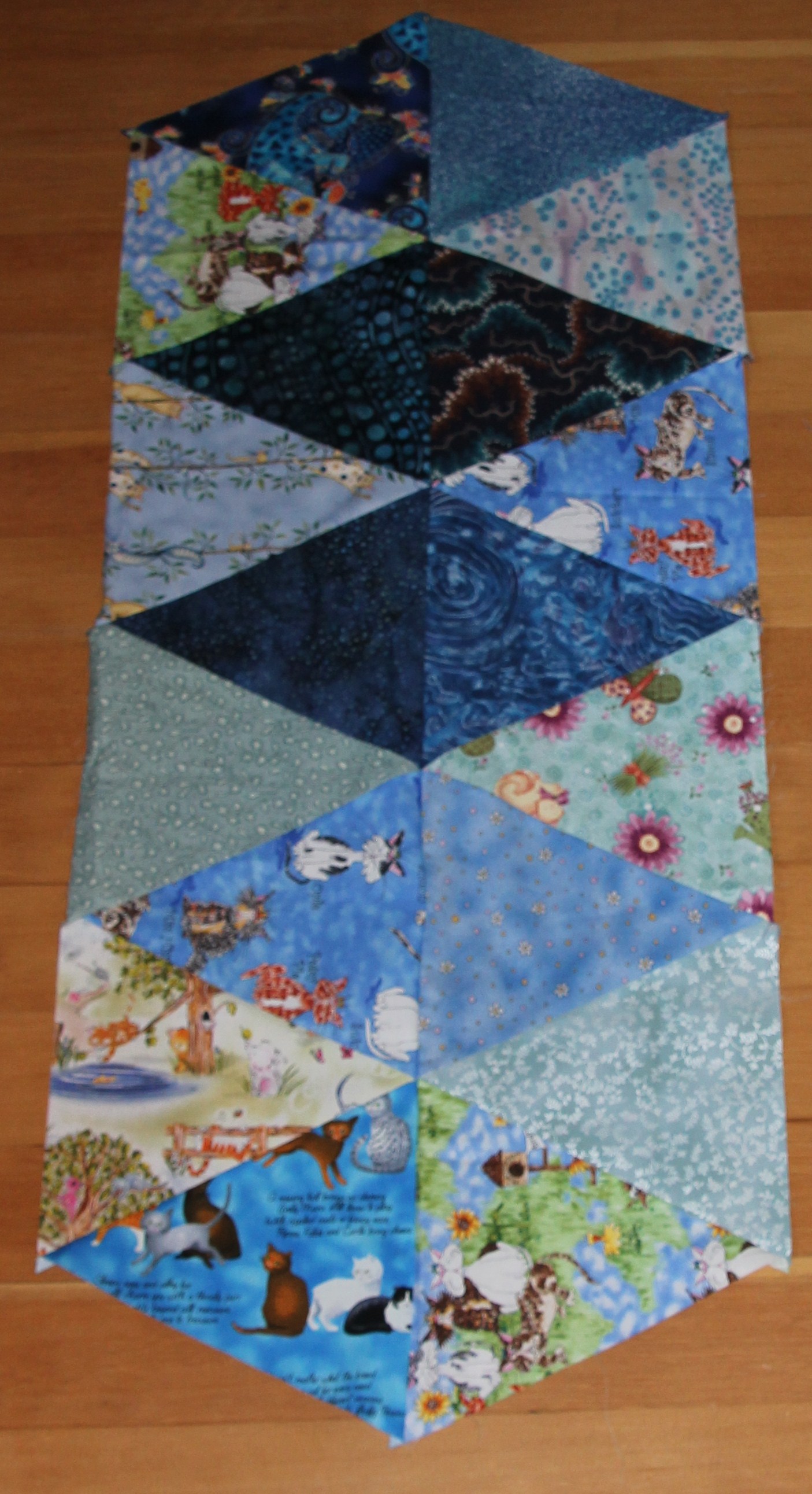 I’ve finished the scrappy trip around the world quilt which I’ve blogged about before. It’s a glorious riot of color, and it made a good dent in my scrap bins. I will get a picture posted one of these days on my blog so that you can see it. I’ve also made another quilt top out of my scraps, using the technique of the “Jelly Roll Race” which you can find by searching on the Internet. It was a really fun project.
