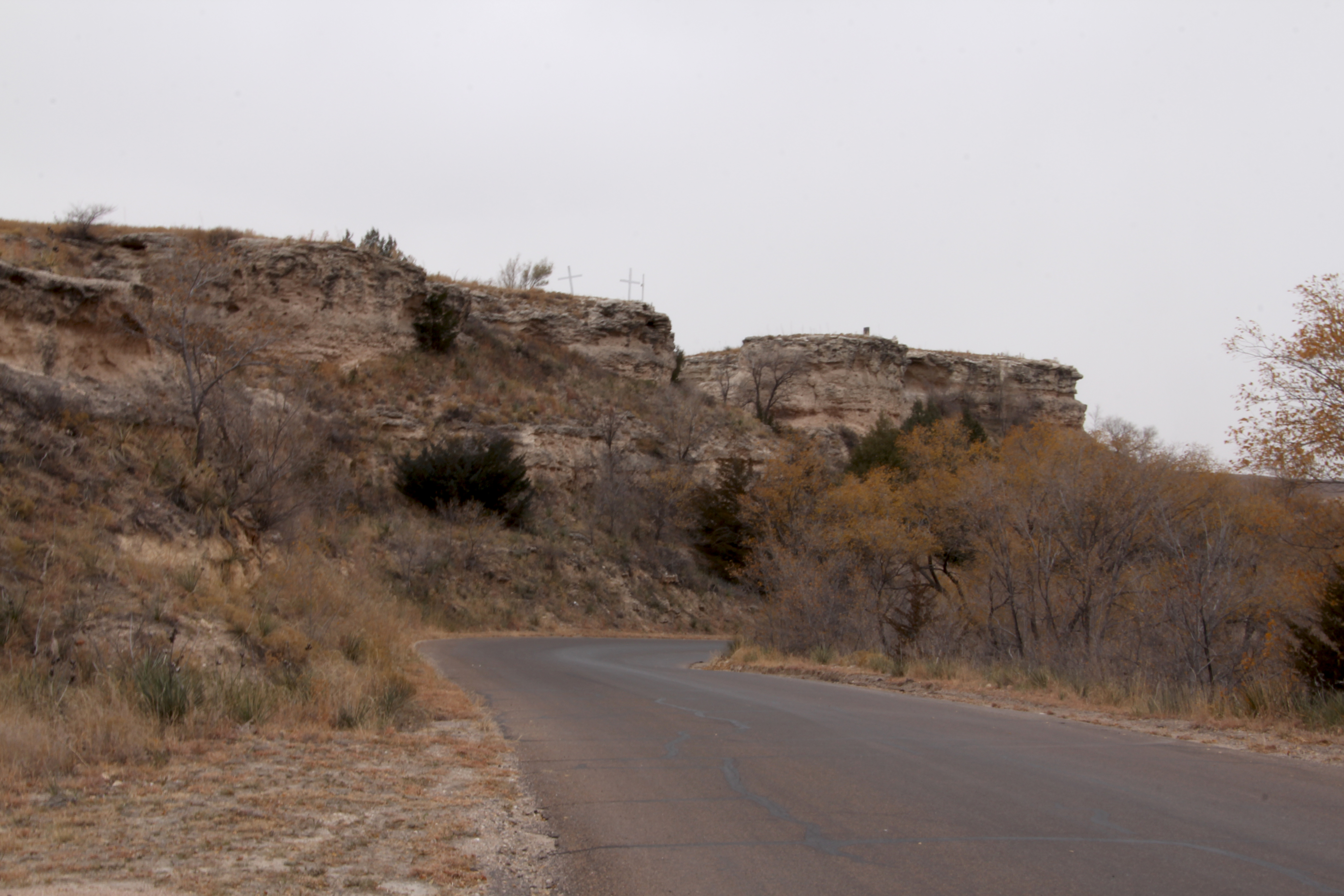 For the first view, it’s looking at the backside, if you’re speaking relative to the town. The three crosses on the top were put there by the Wray Ministerial Alliance some years ago. The smaller monument is a Masonic marker.